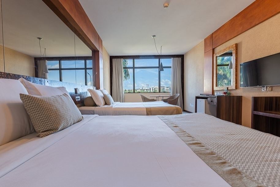 Localizada no 2º andar, esta acomodação oferece conforto e tranquilidade para seus hóspedes. Ideal para família e tem como principais características o amplo espaço interno aliado à funcionalidade de suas instalações. Apartamentos com vista lateral para o mar e 35m² de área.