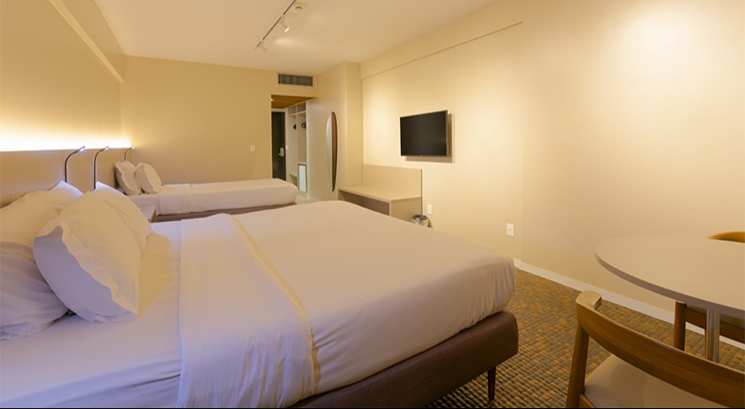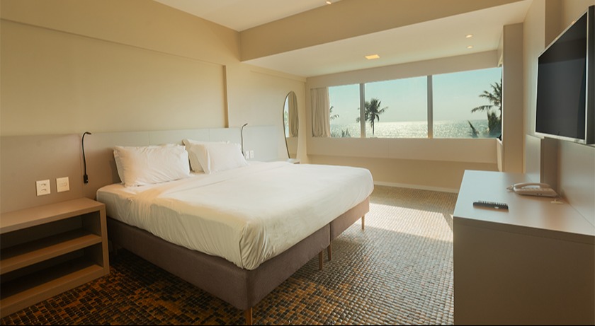 Localizados no quarto andar, os apartamentos Premium Plus possuem enxoval diferenciado com travesseiro e pillow-top de plumas de ganso, diferenciando-se do Premium Floor. Apartamento com vista frente mar e 37m². Capacidade Máxima 4 pessoas.